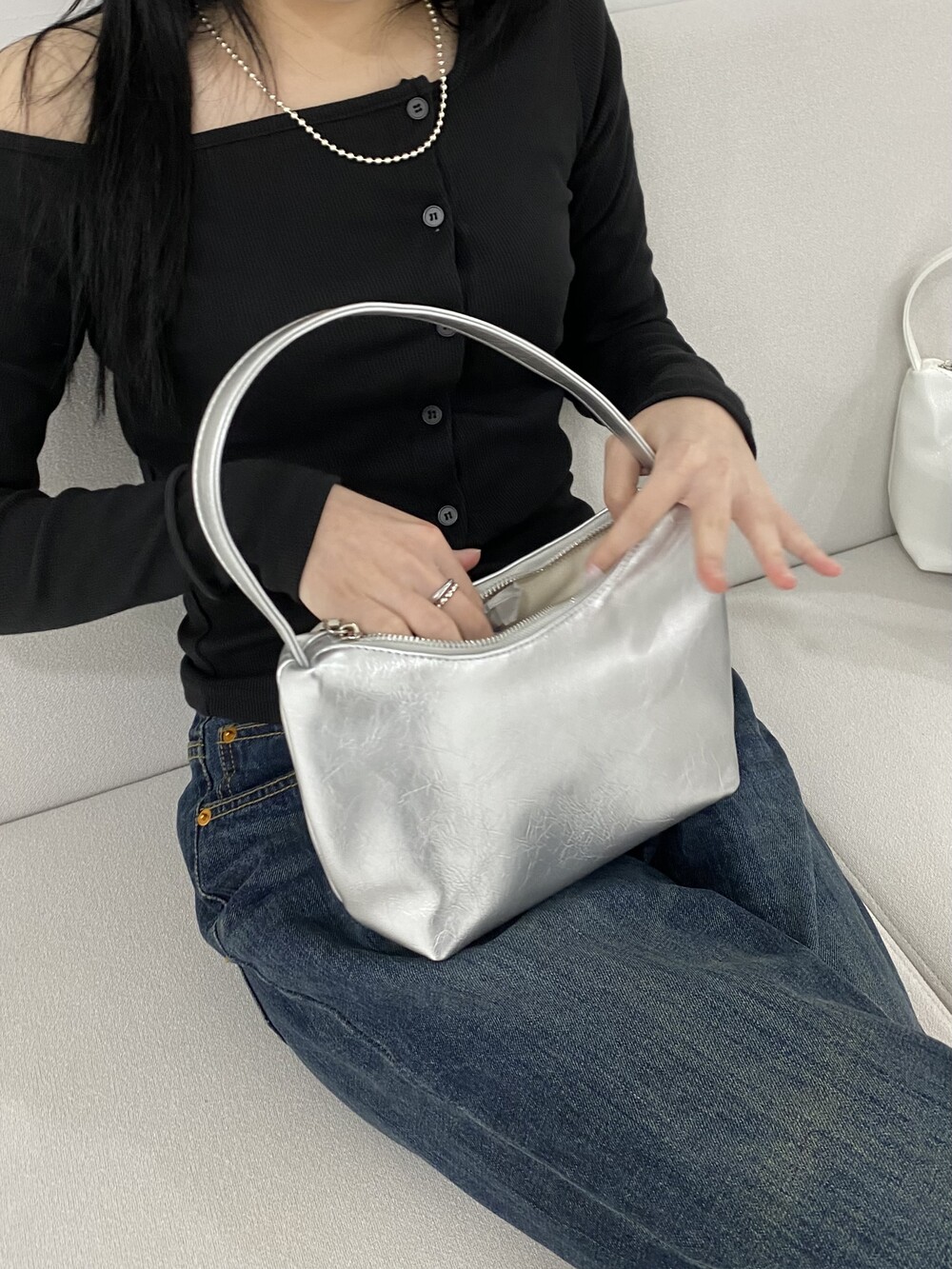 - 화이트 계열의 밝은 색상 특성상 잘 보일 수 있는 검은 점, 작은 스크래치