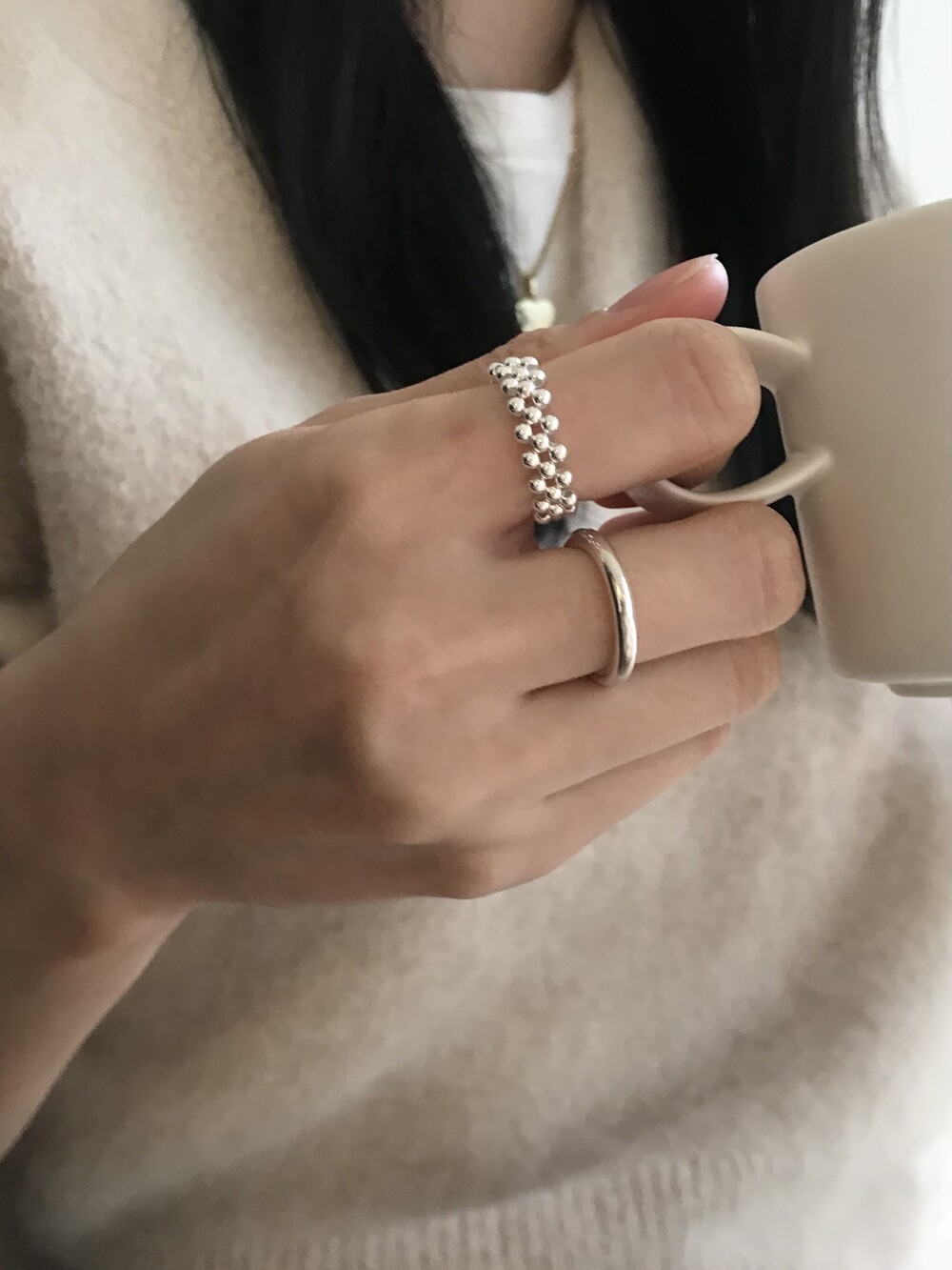 와이드 링 + 투 라인 링 + 심플 볼드 링
