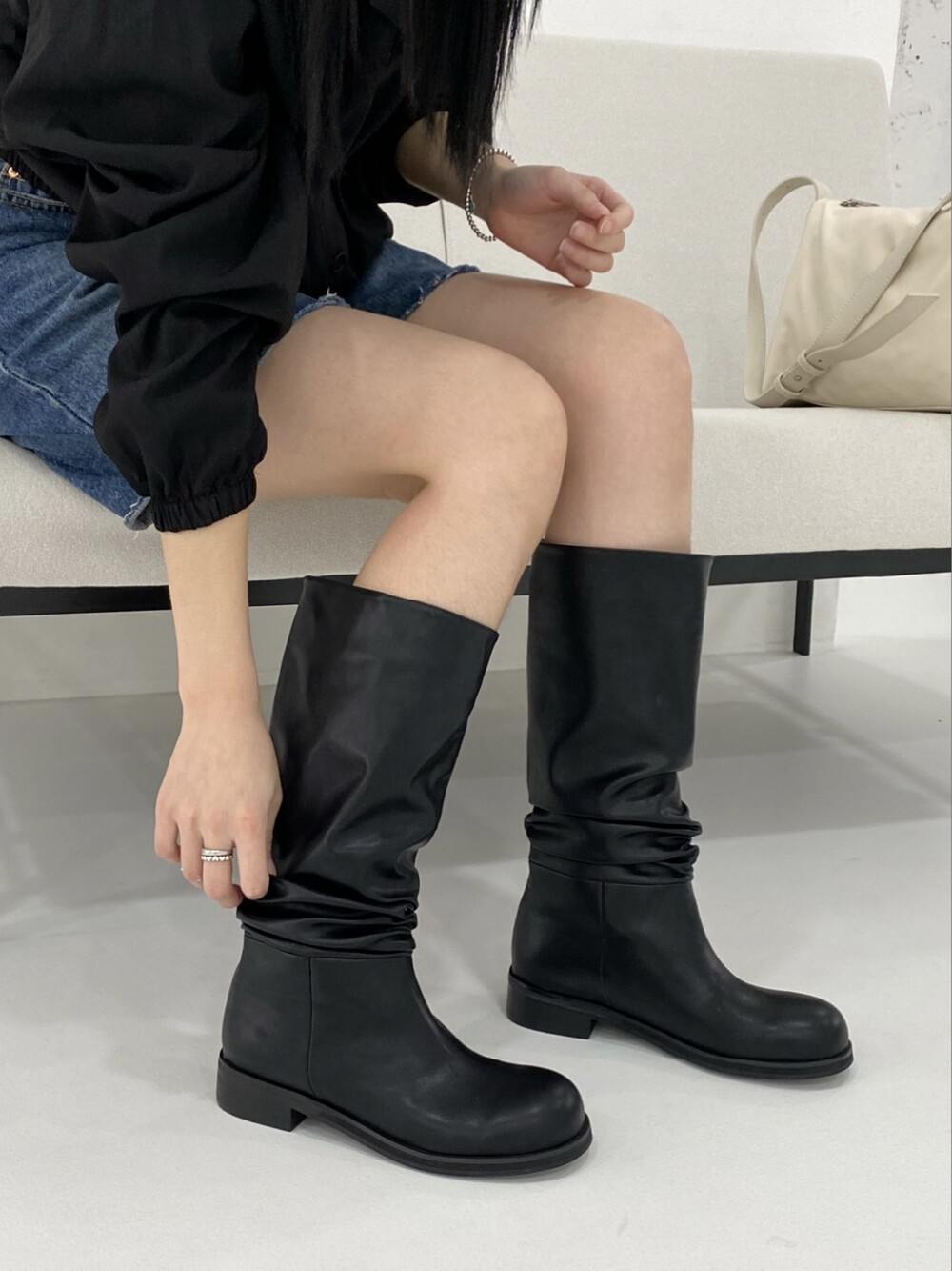 라운드 셔링 하프 부츠