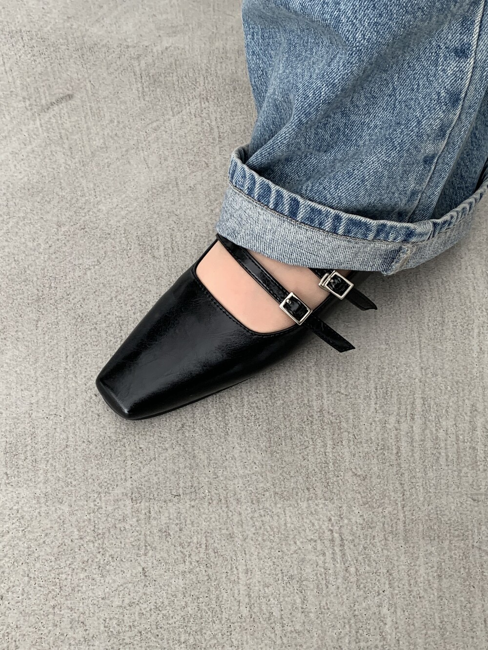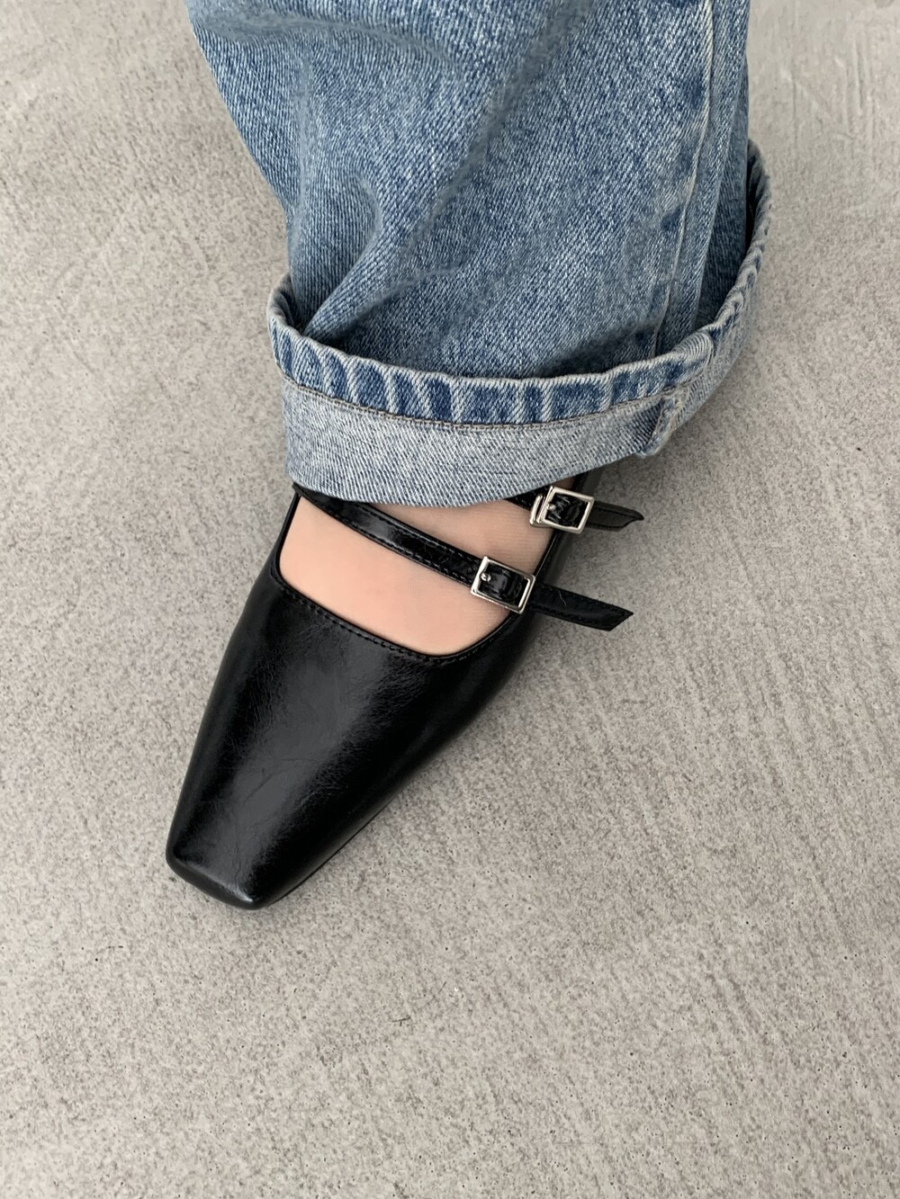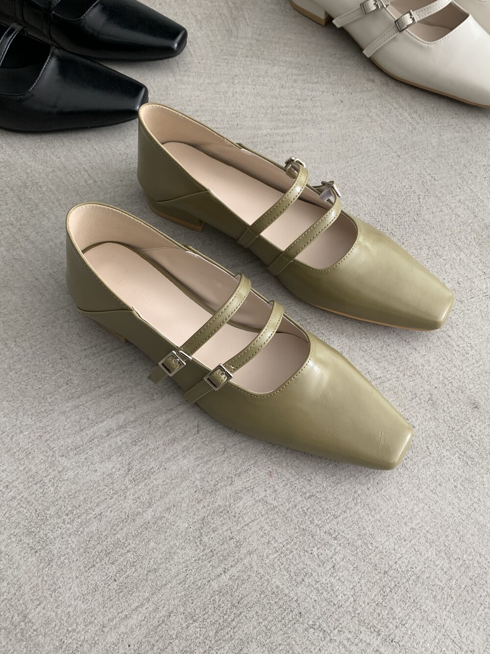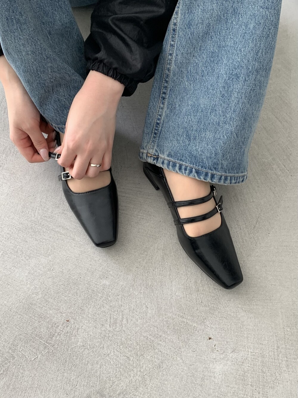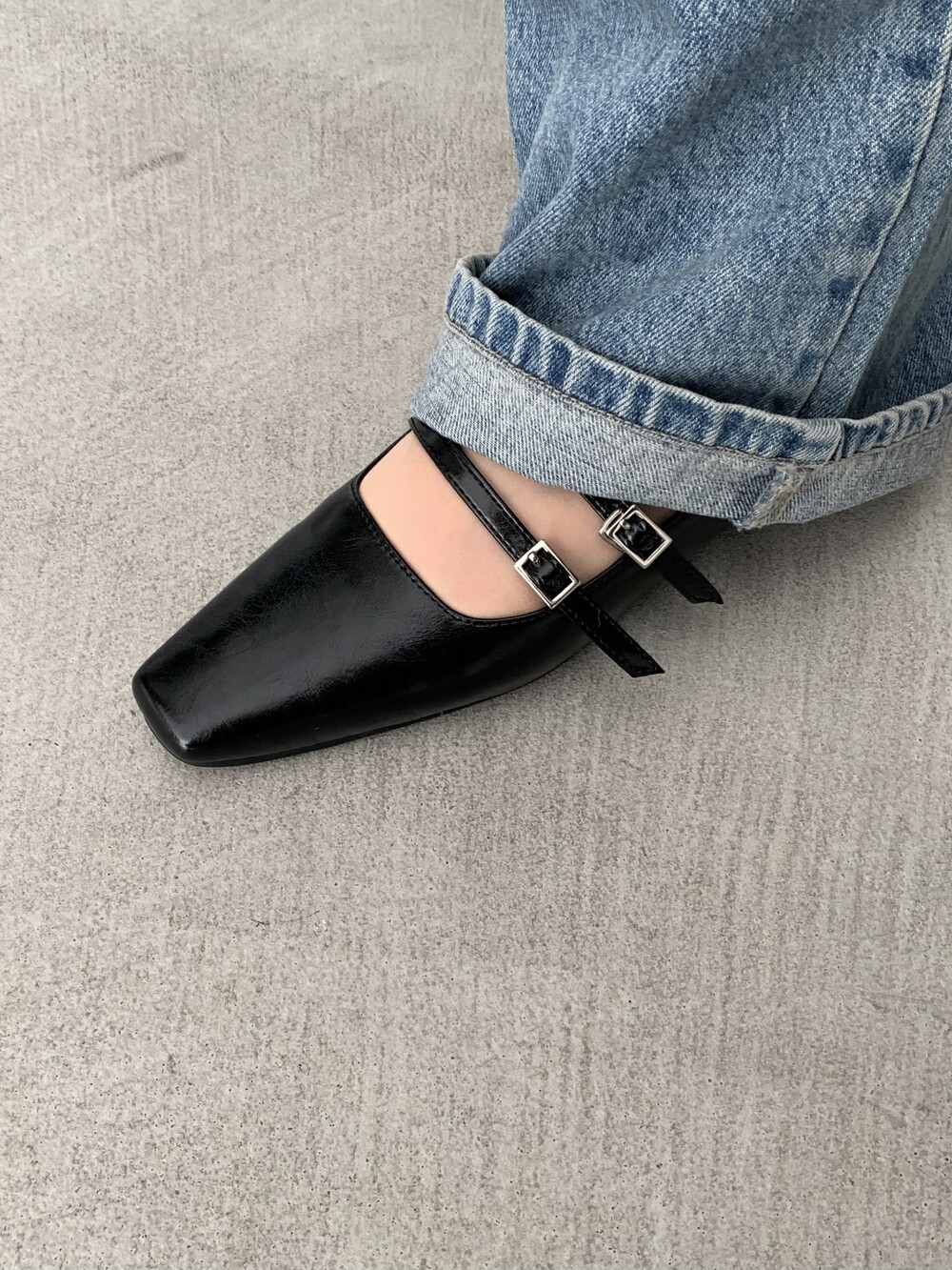 스퀘어 투스트랩 플랫