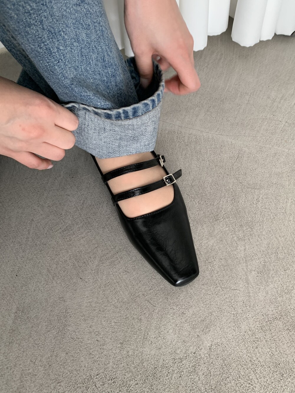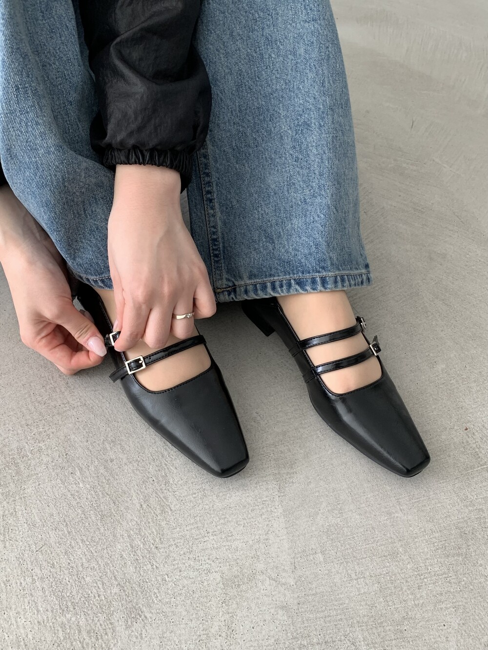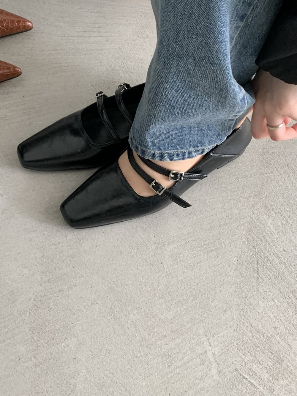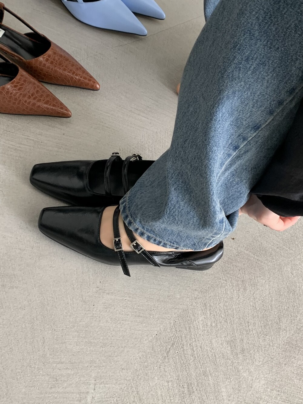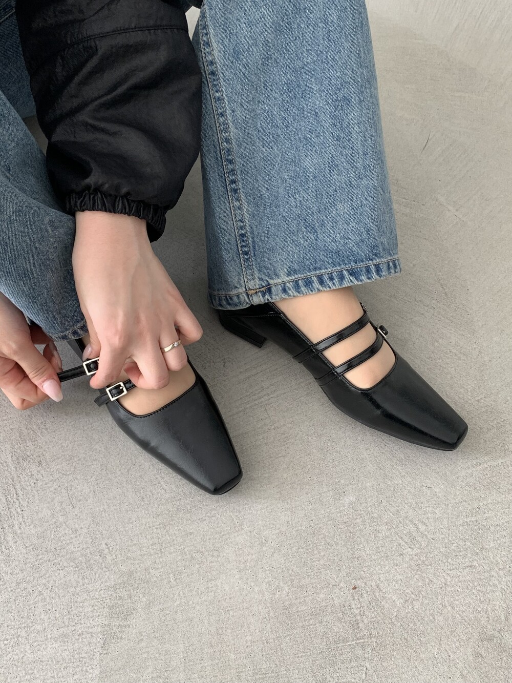 스퀘어 투스트랩 플랫